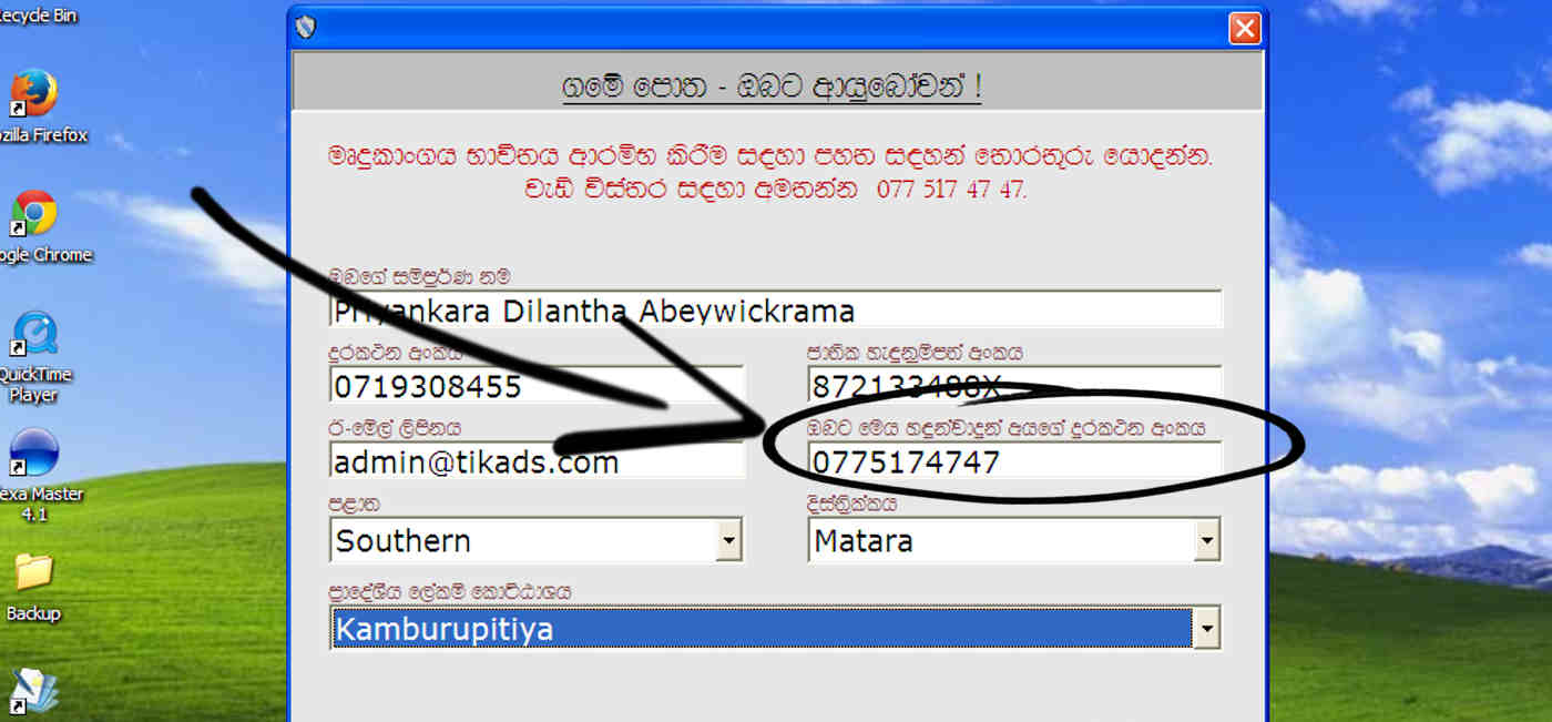 ඔබේ මිත්ර ග්රාම නිලධාරී තුමා හෝ තුමිය ගමේ පොතේ ලියාපදිංචි වෙද්දී අහනවා ගමේ පොත ගැන එයාට කියල දුන්න කෙනාගේ දුරකථන අංකය. අන්න එතනට ඔබේ දුරකථන අංකය යොදන්න කියල කියන්න.